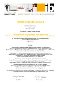 Die Schulung mit einer sehr umfassenden animierten PowerPoint Präsentation und Handout/Handbuch (450 Folien mit Theorie, AHA-Effekten und Übungen) wurde 2025 entwickelt für das Hospiz- und Palliativnetzwerk Regionalverband Saarbrücken.