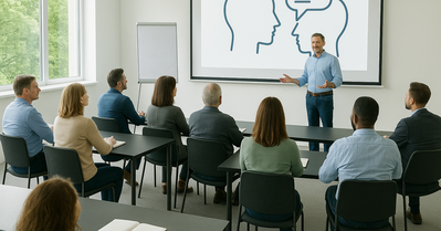 Der Dozent der Schulung ist Psychologe und Kommunikationstrainer,